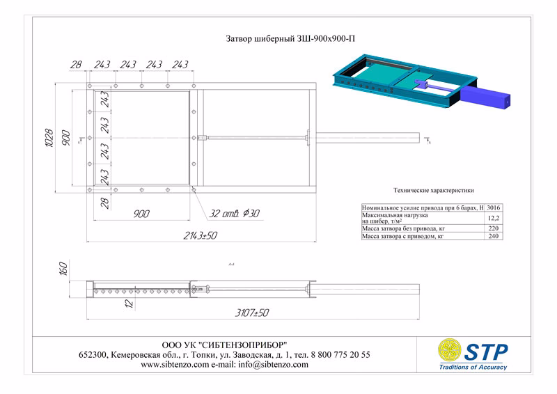 Наименование Габариты проходного окна шибера, мм Состав затвора шиберного ЗШ Масса Максимальная нагрузка на шибер, т/м2